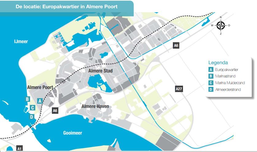 De 16 luxe strandappartementen wordt gebouwd in Almere poort op de kruising Europalaan en Zwedenstraat.